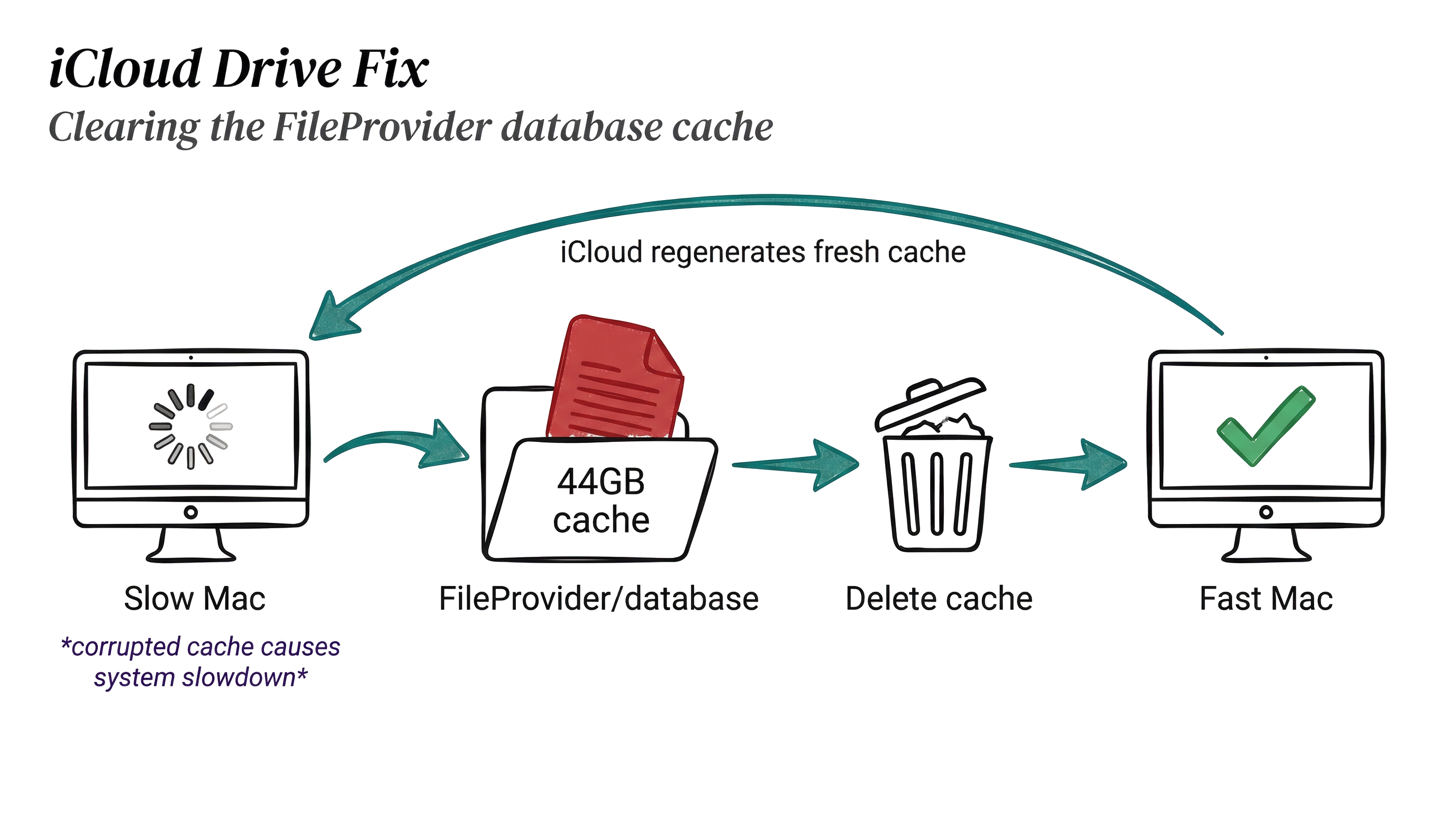 The problem is basically these giant cache files of contents on iCloud. They live in places like this: