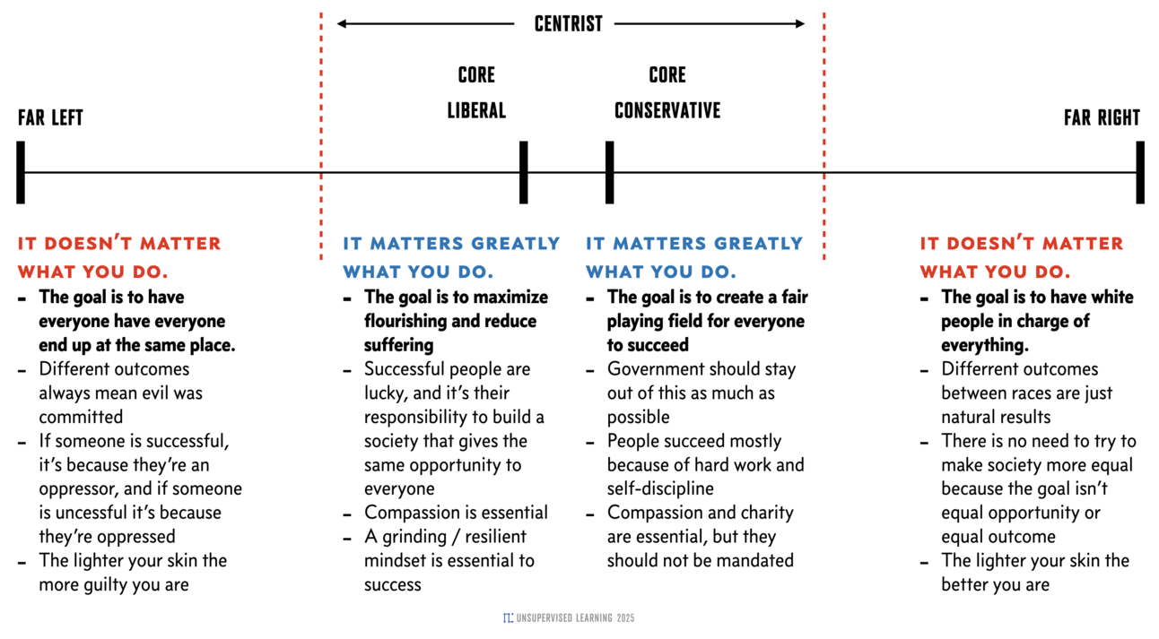 But the Far Right has its own problems. I would say the main counterpart to the Far Left narrative above is one that's less damaging because it's not as prolific, but would actually be much worse if it were widespread. It goes something like this: