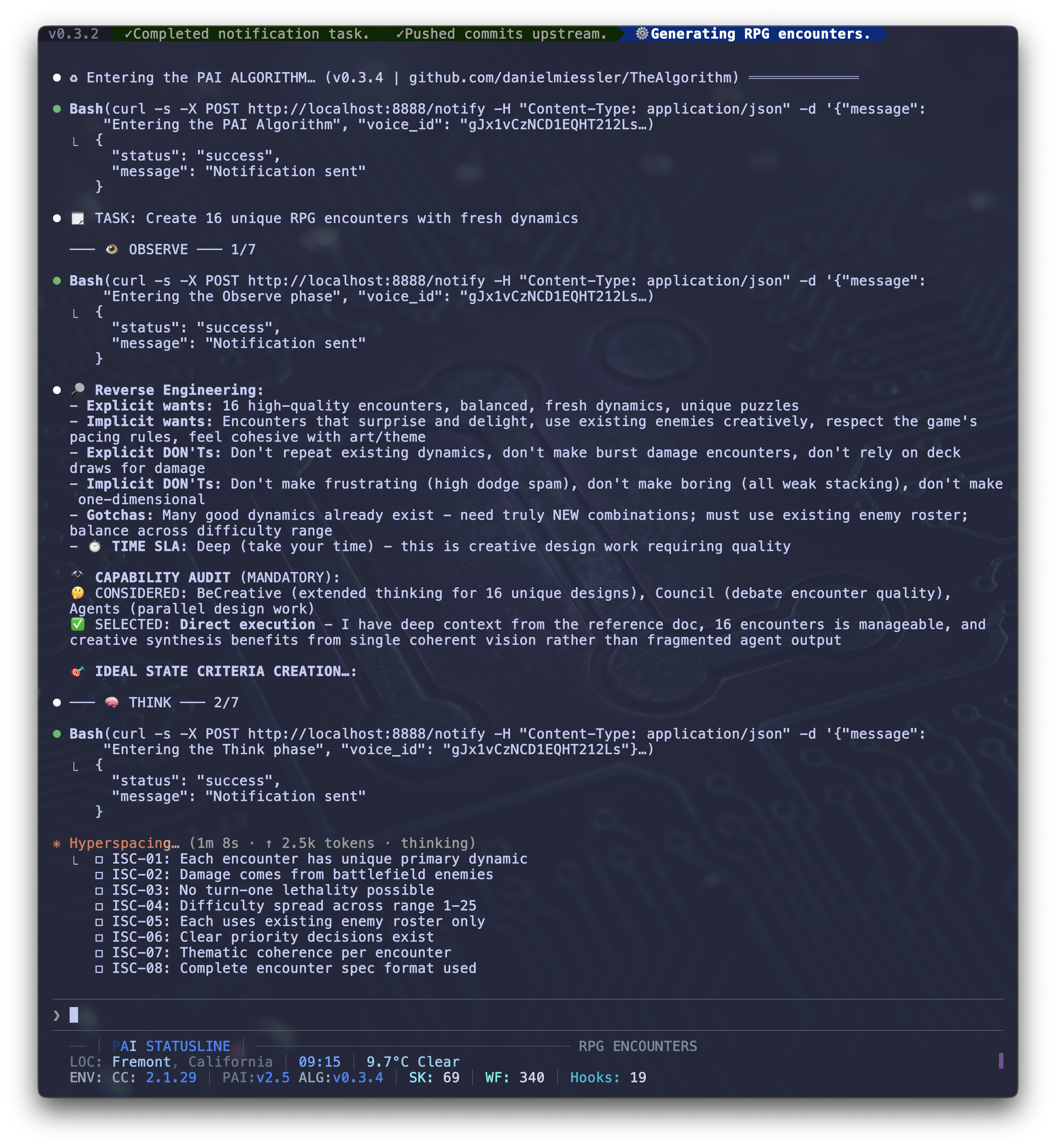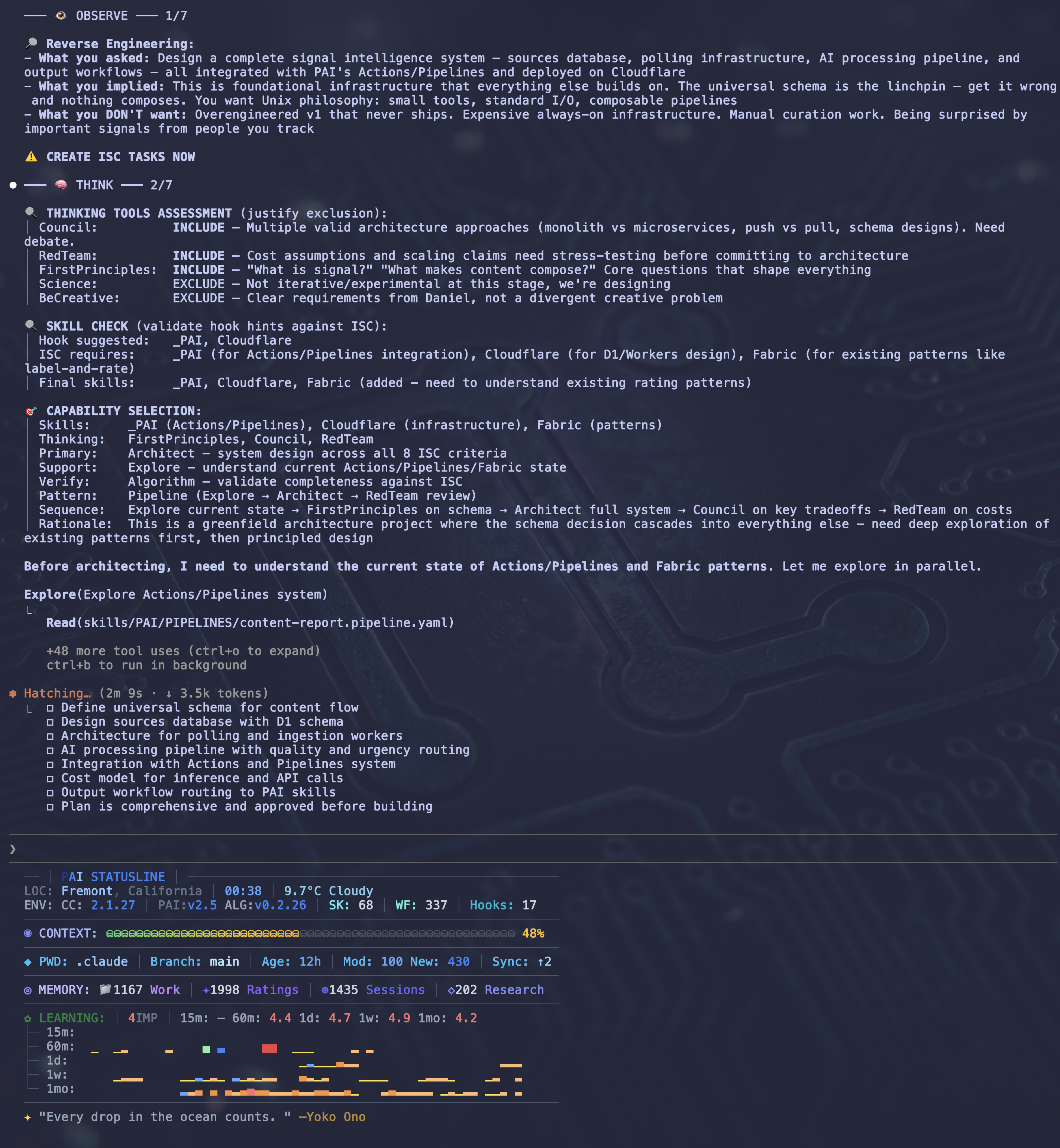 I've built The Algorithm (my cute handle-name I've given it) into our PAI project (Personal AI Infrastructure) that runs on top of Claude Code. Here's what it looks like in practice.