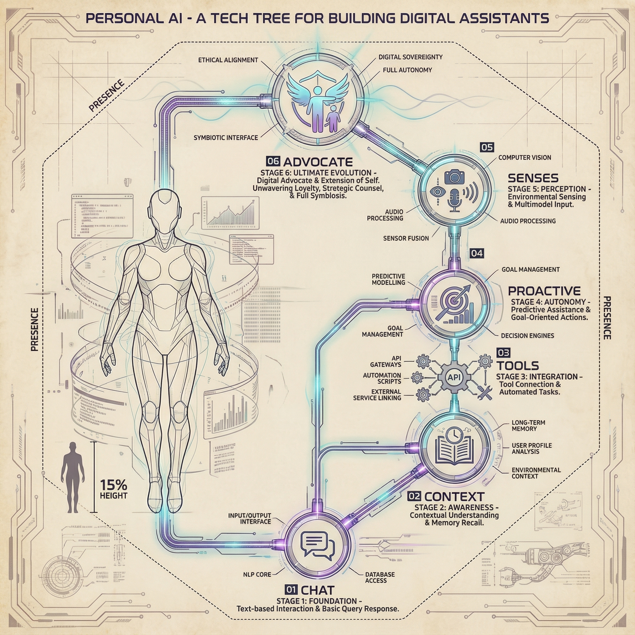 Level 2: Agentic (2025-2027) - AI agents that can use tools, call APIs, and take actions on your behalf. This is where Kai operates. Claude Code with browser automation, file operations, and MCP integrations. The AI doesn't just respond—it acts.